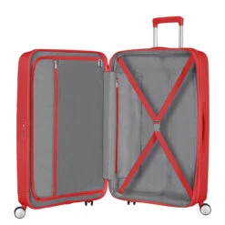 This 77cm case is the largest case available to the American Tourister Soundbox collection and is able to offer a large 110L expanded capacity, with a weight outlay of just over 4.2kg. 4 double spinner wheels offer an extremely easy manoeuvrability in any direction while the double tube, multi-stage telescopic trolley handle enable the handle to fit to any height traveller. A striking collection of Colourful Suitcases that offer a choice of bright and bold colours. We love the American Tourister Soundbox for its vast colour choices, huge capacity and its expandable feature.